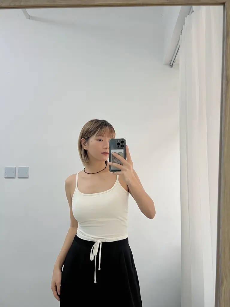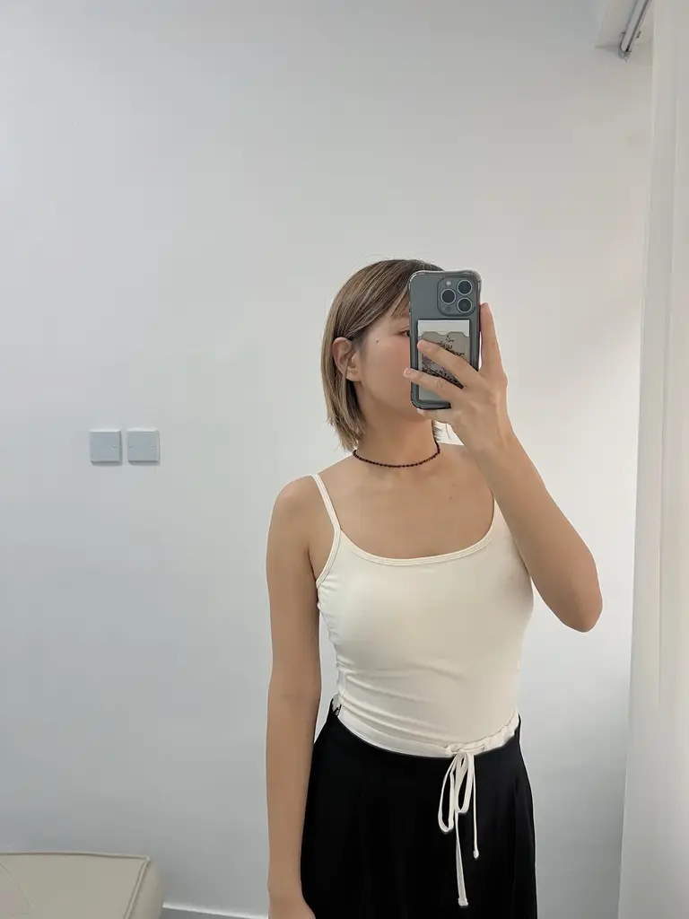 Asymmetric Strap Padded Tank (白)