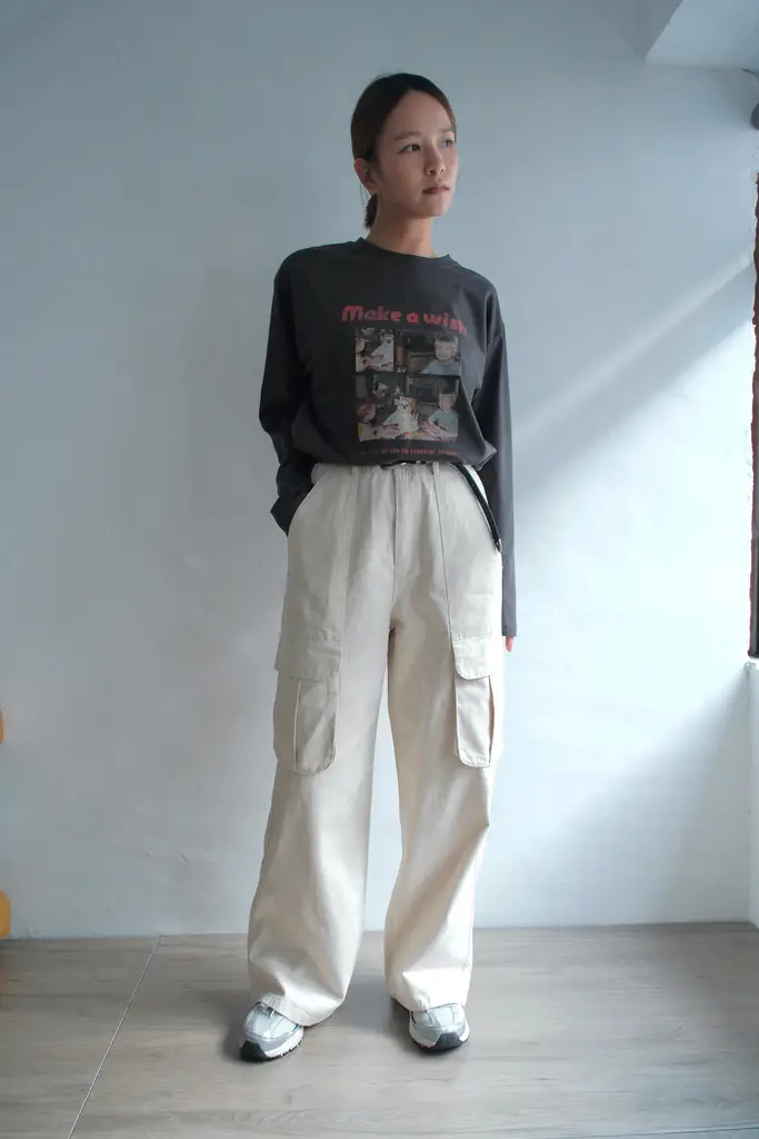 寬鬆直筒褲管 // 大腿兩排口袋設計 // 落街不用帶袋系列