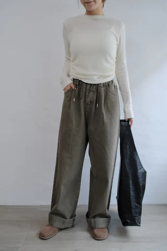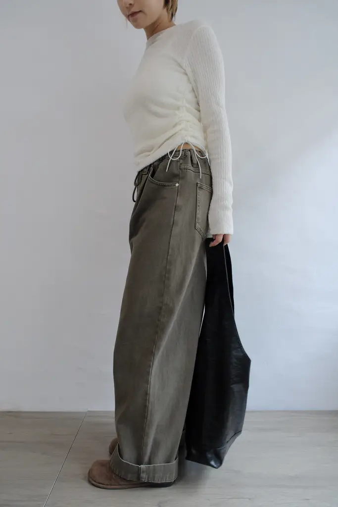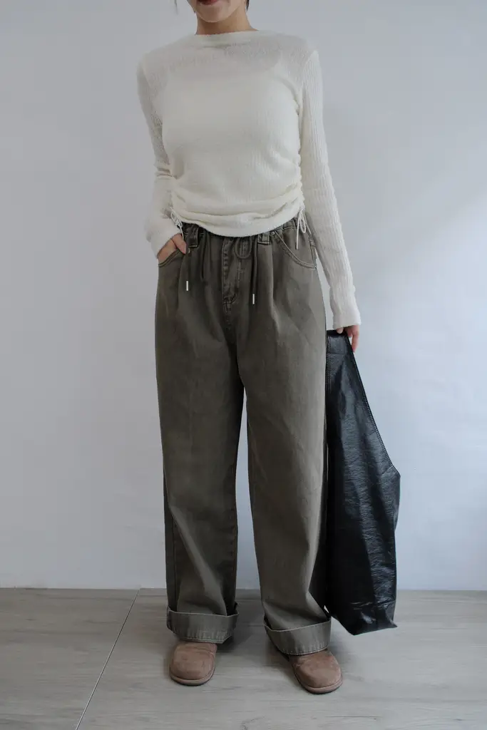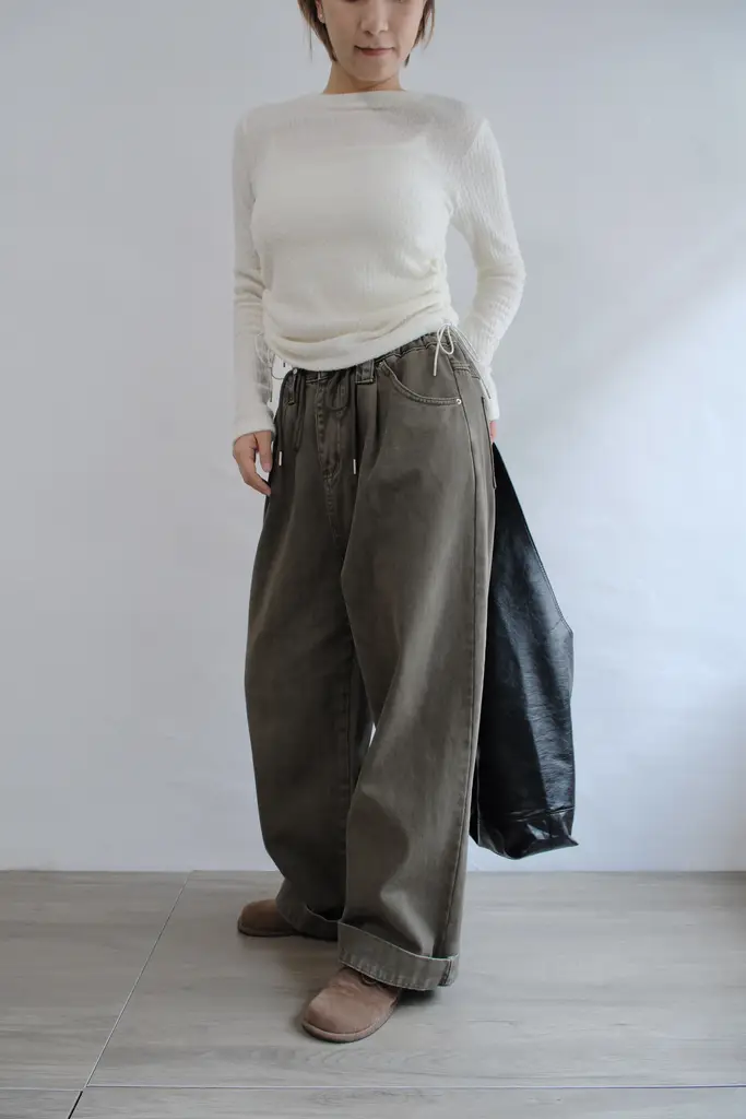 超寬鬆直筒褲管 // 抽繩腰圍可自行調整尺寸