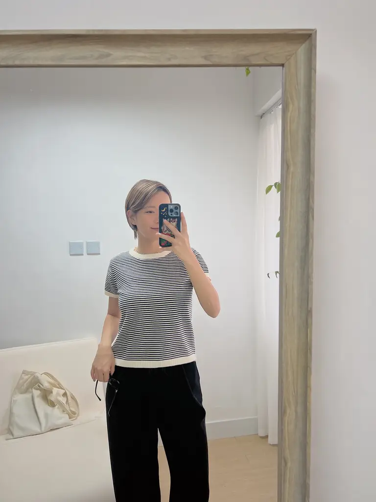 幼間條減齡 // 壓紋圓領 // 質地偏薄容易收納