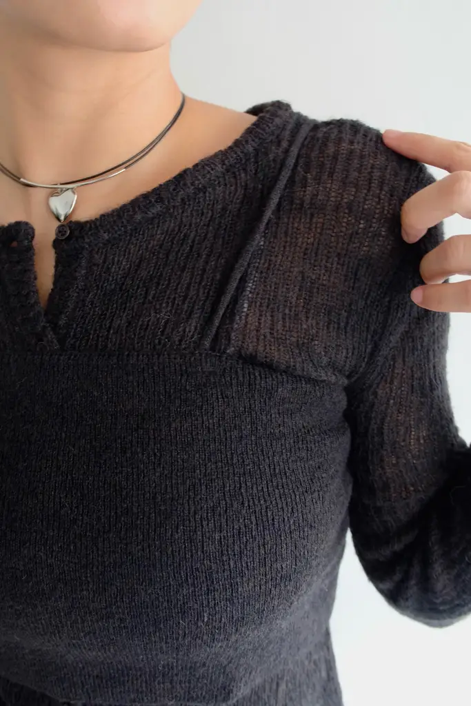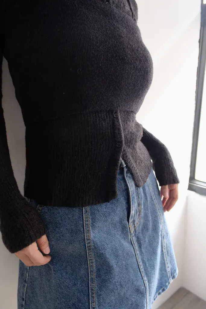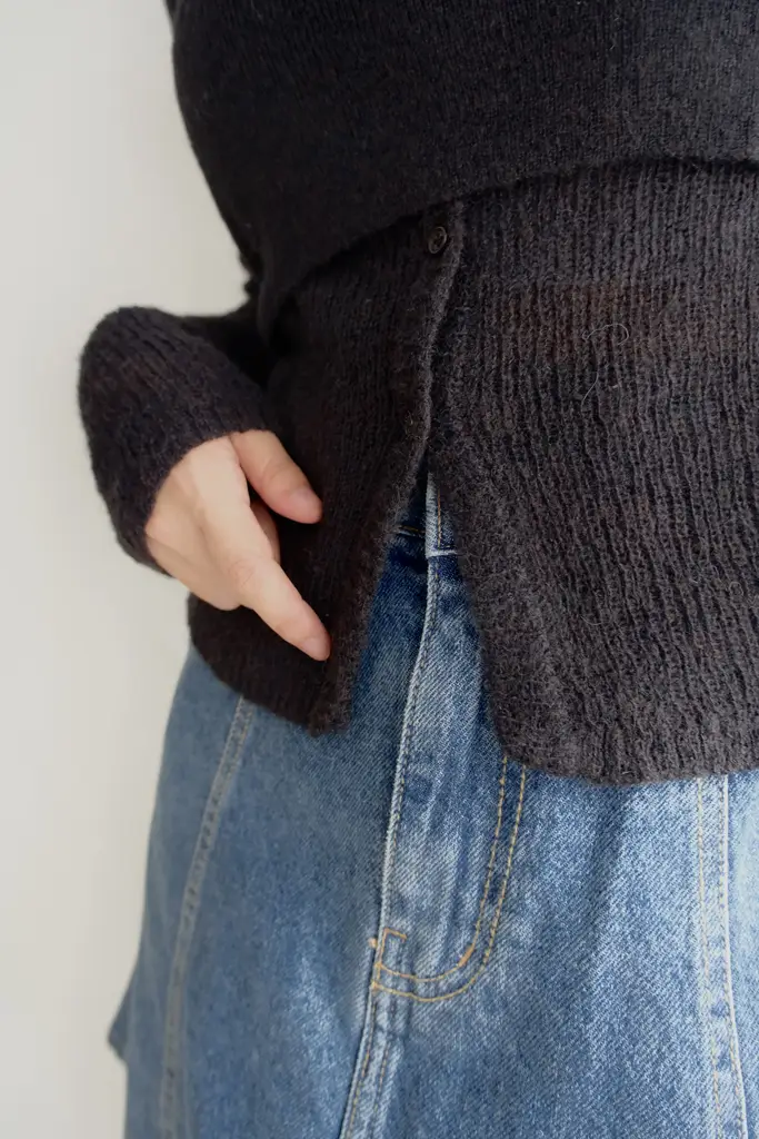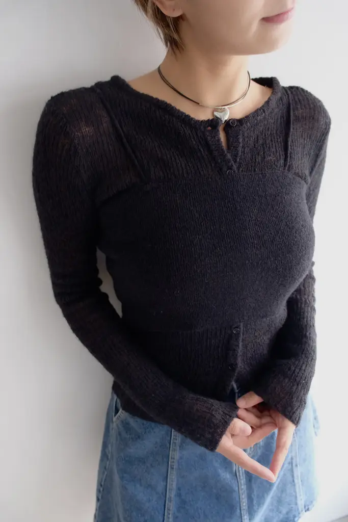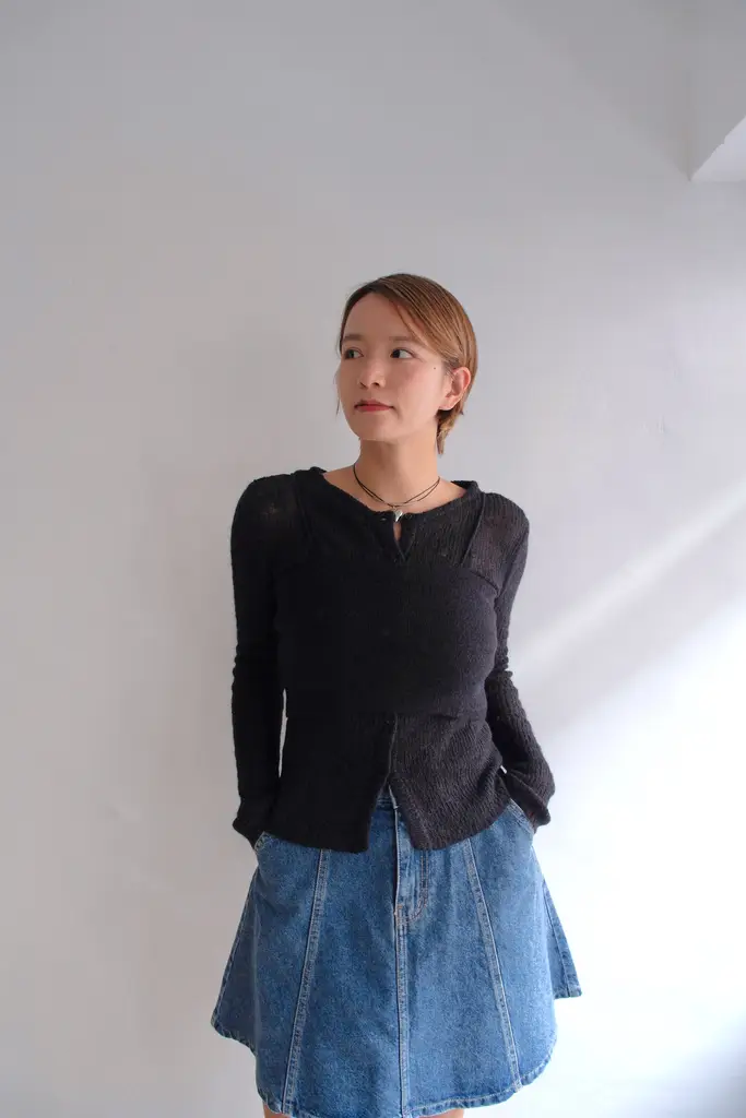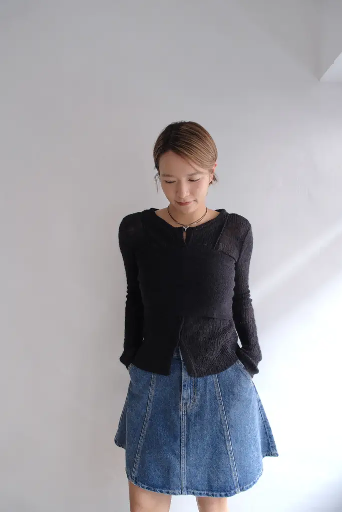 針織外套-> 微寬鬆不貼身版型 // 疏洞針織增加透膚感