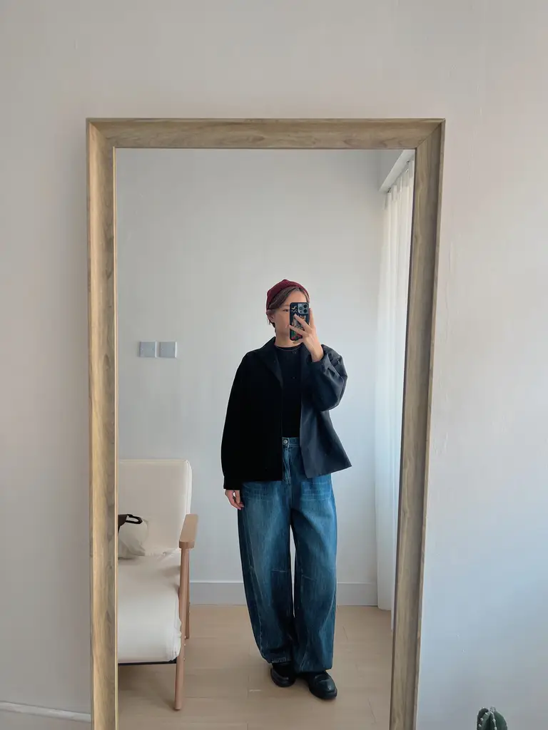 寬鬆落肩版型 // 肩位有薄pad增加挺度但不會超生硬