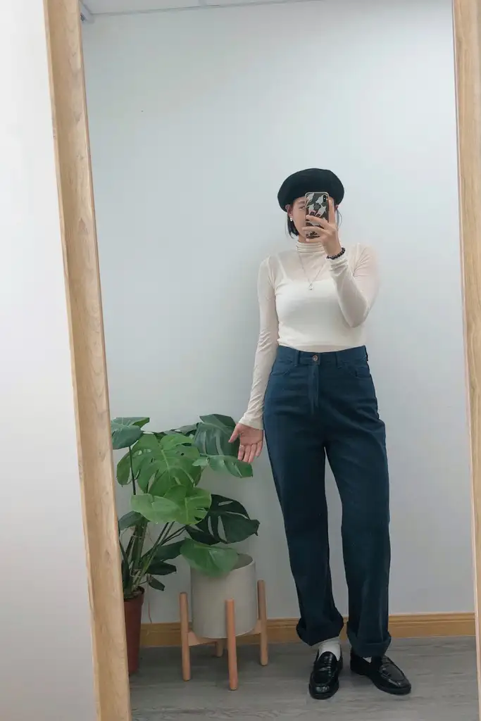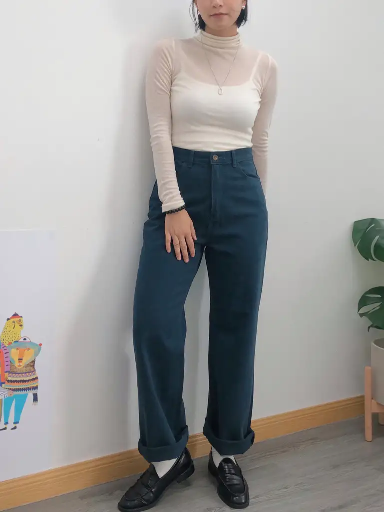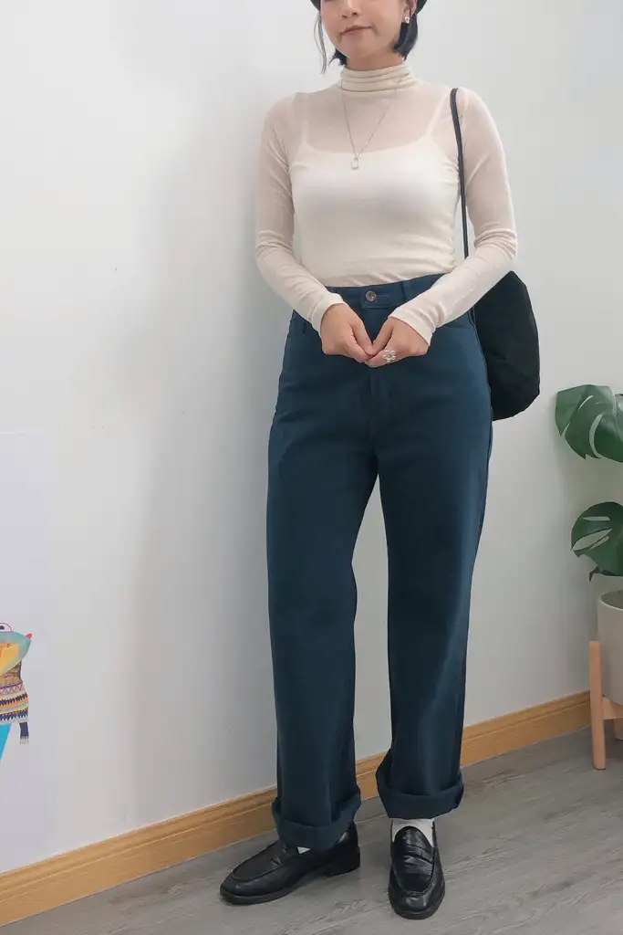 直筒褲管 / 高腰款 / 純棉舒適布料