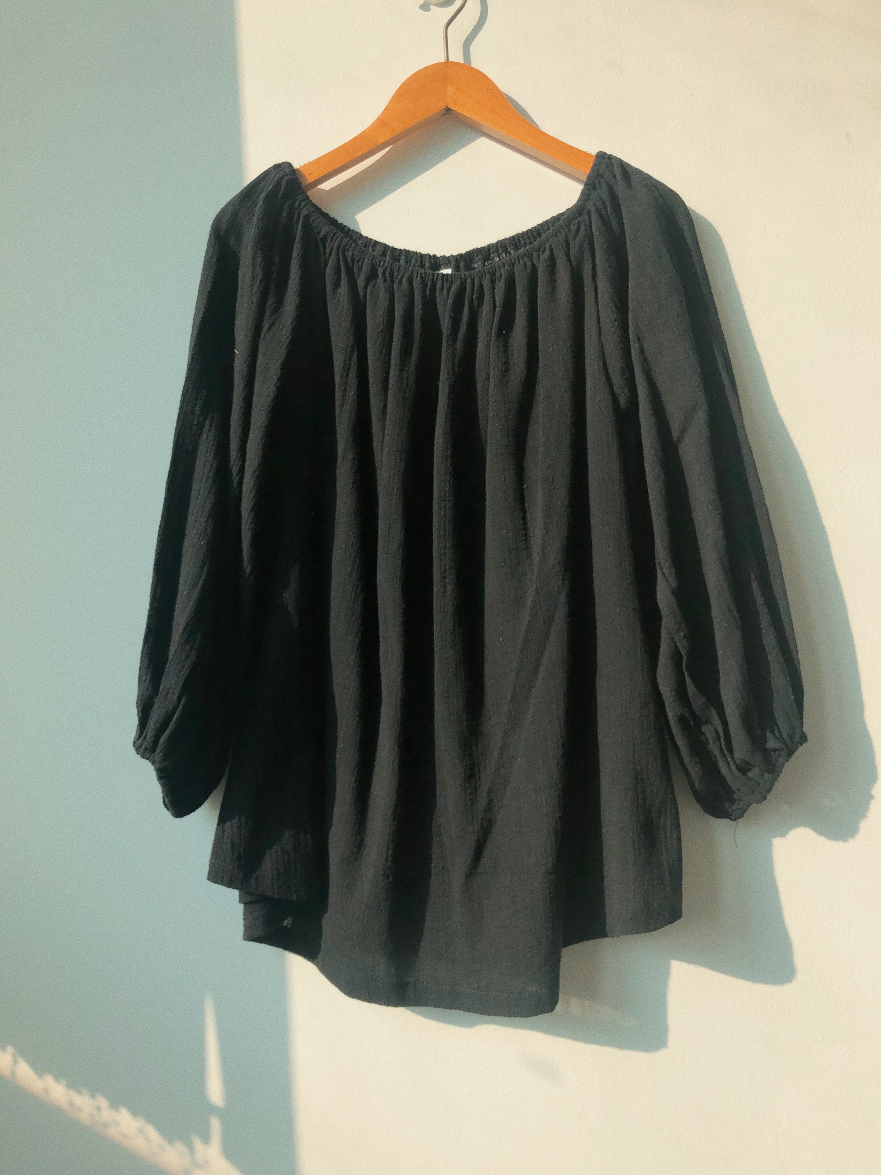 肩位有彈性可off-shoulder / 泡泡袖寬鬆設計打造休閒愜意感