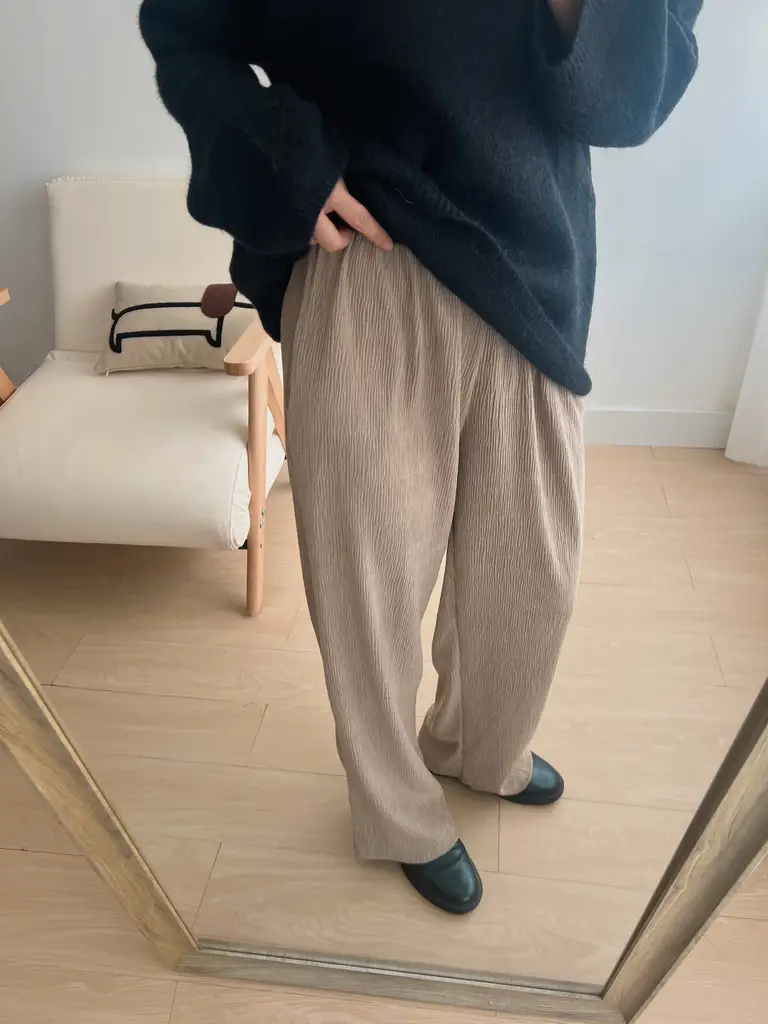 直筒褲管 // 全橡筋腰 / 樹紋質感