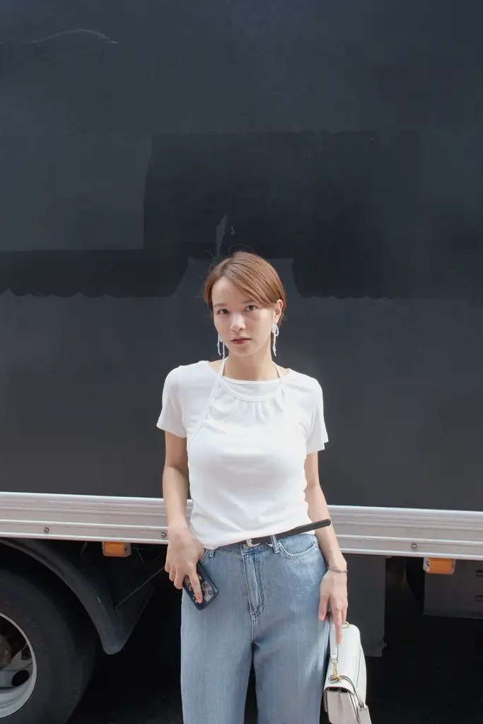 下身襯牛仔褲很優雅與朋友high tea; 襯西褲大方得體
