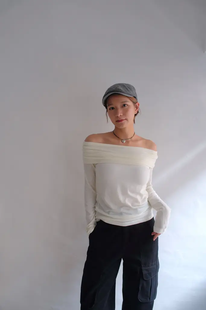 微寬鬆版型 // off shoulder 領口向下反