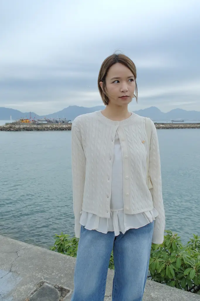 經典麻花併布薄針織外套 (米) 數量