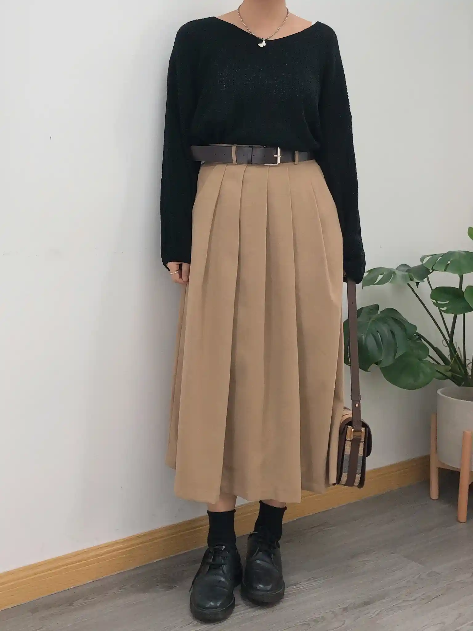 不敗百褶裙,這次還配有皮帶很有誠意喔