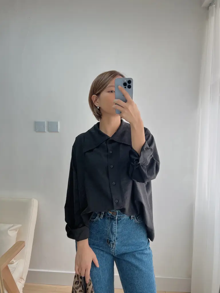 主頁 未分類 領口兩穿免燙恤衫 (黑)