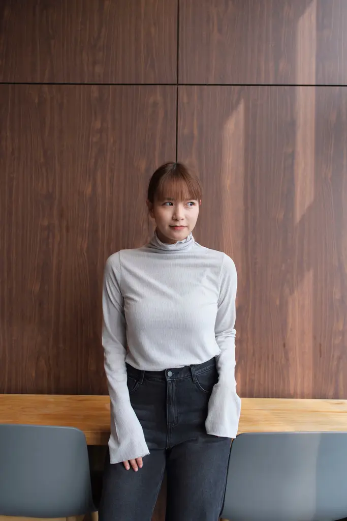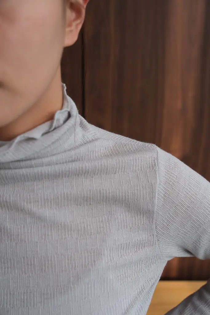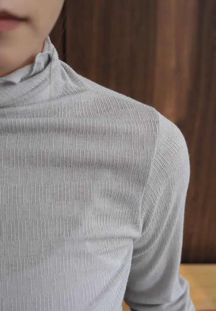 高領併色紋理Top (灰白)