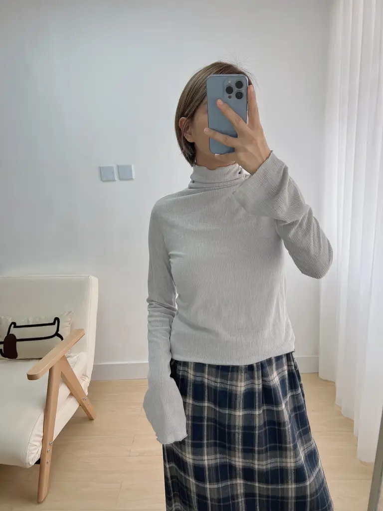 主頁 未分類 高領併色紋理Top (灰白)