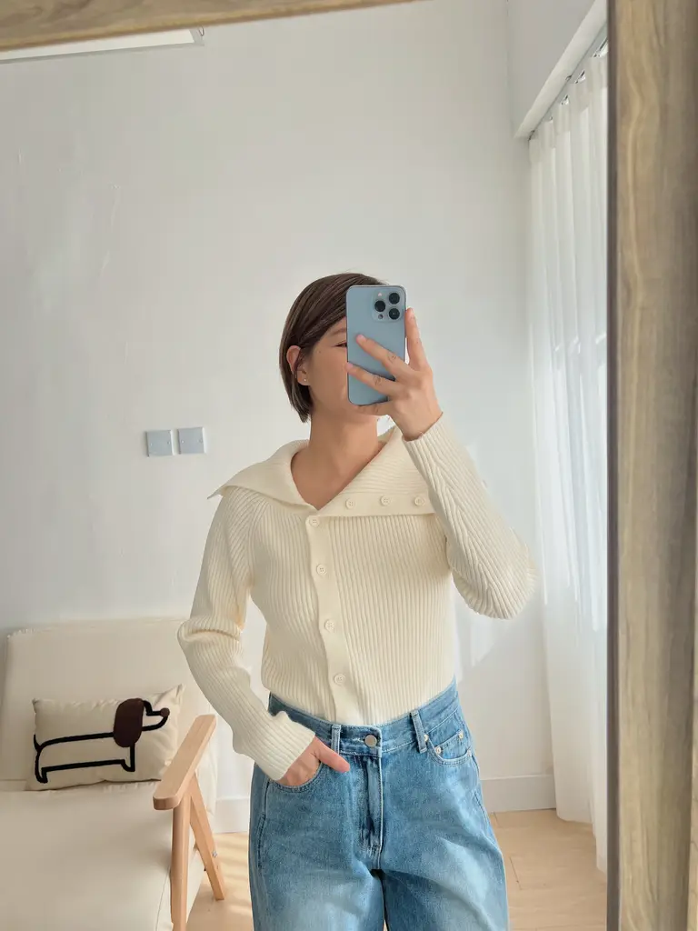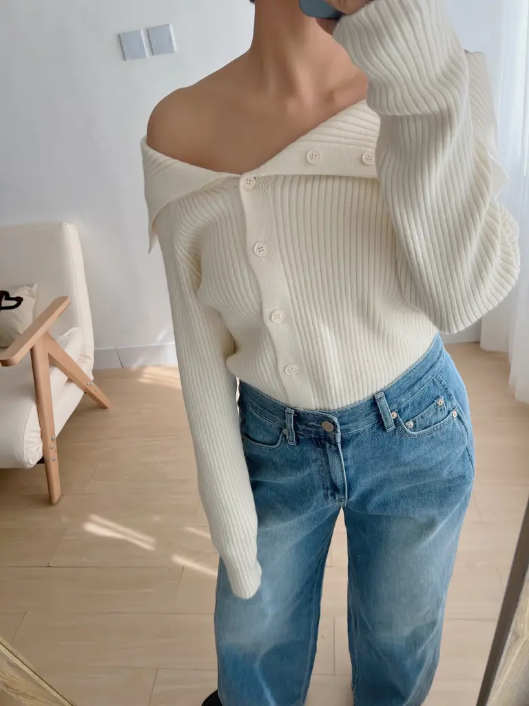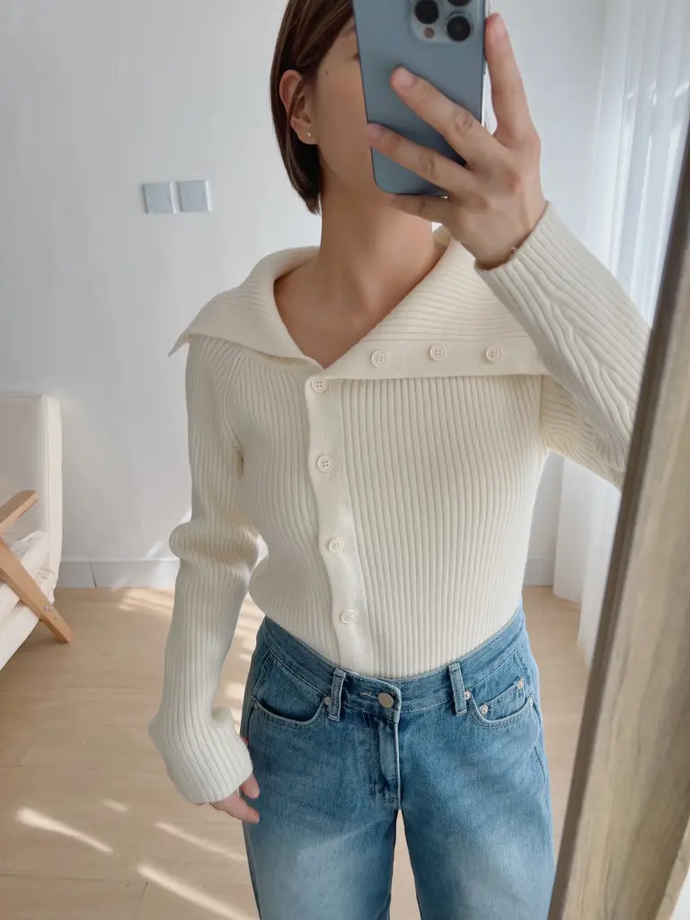 大翻v領設計 // 排扣延伸到領口