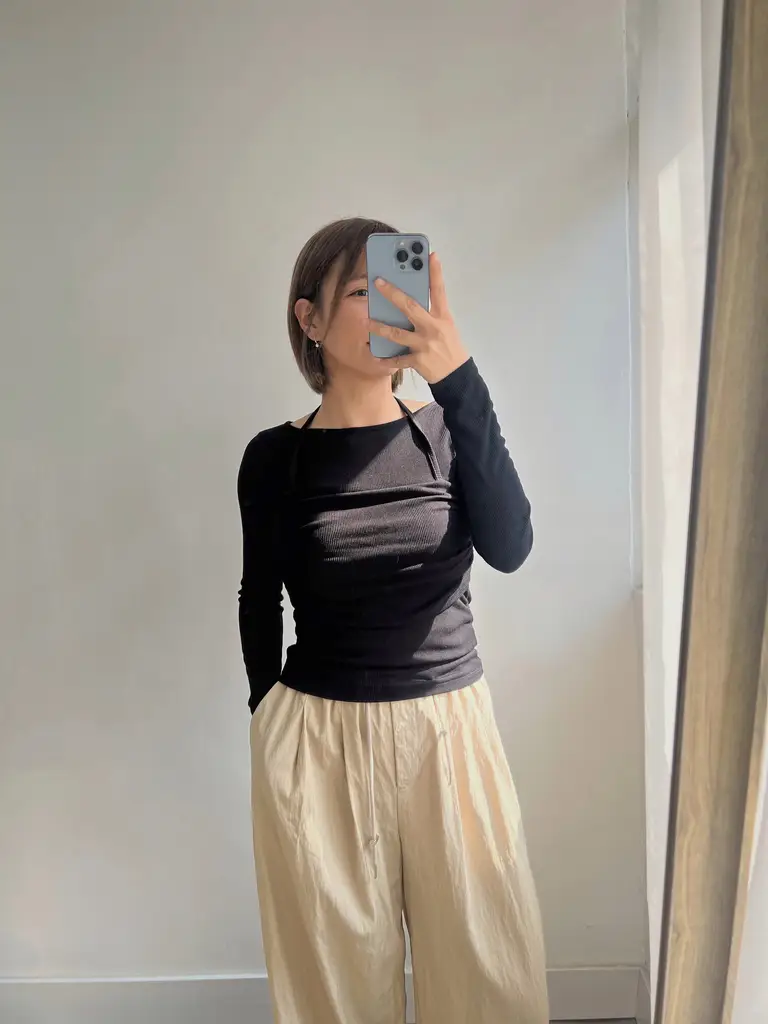 掛頸假兩件設計 // 外短內長營造層次感