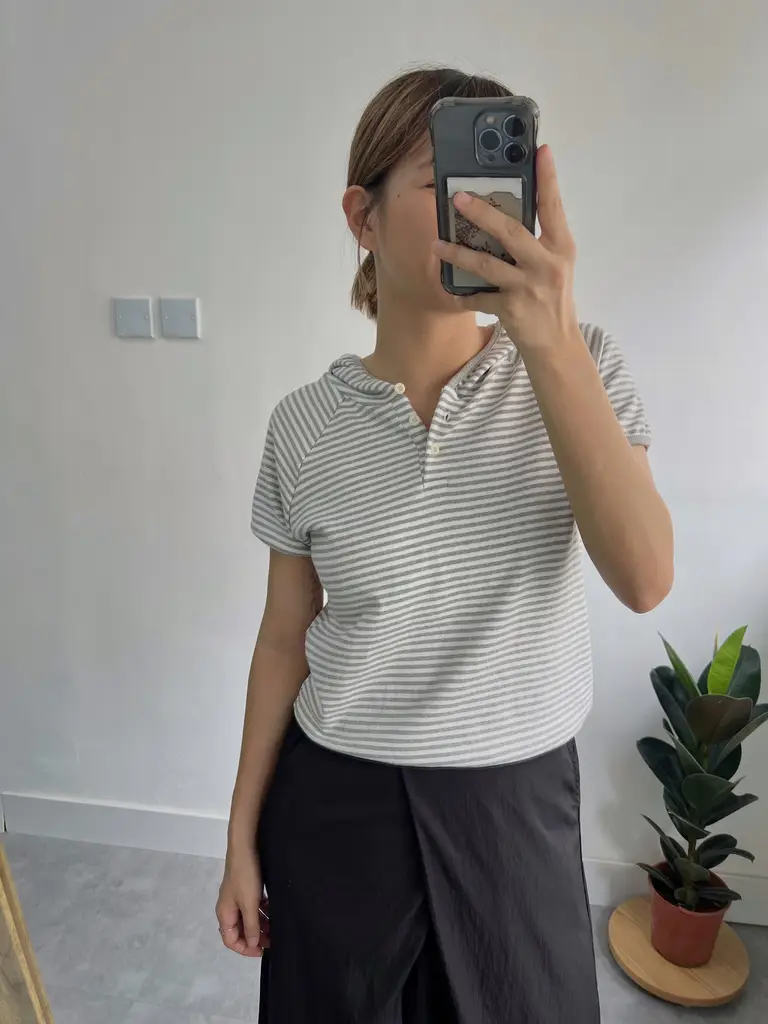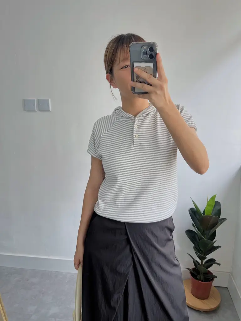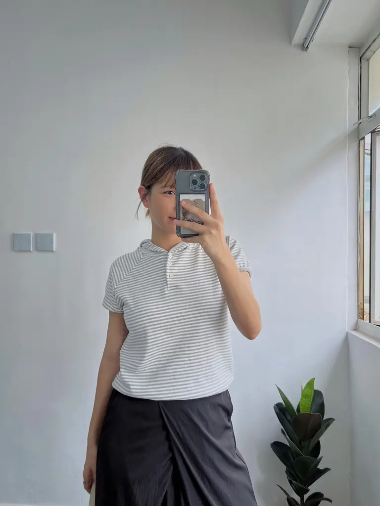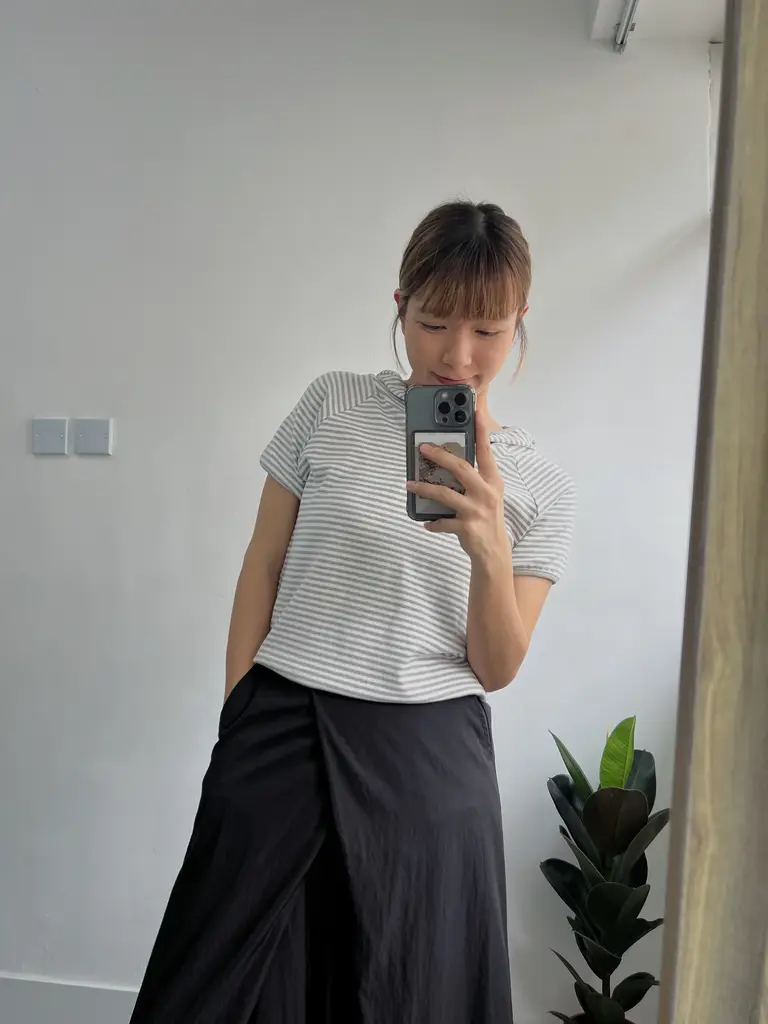 幼間條減齡耐看 // 下擺羅紋包邊穿出泡泡感
