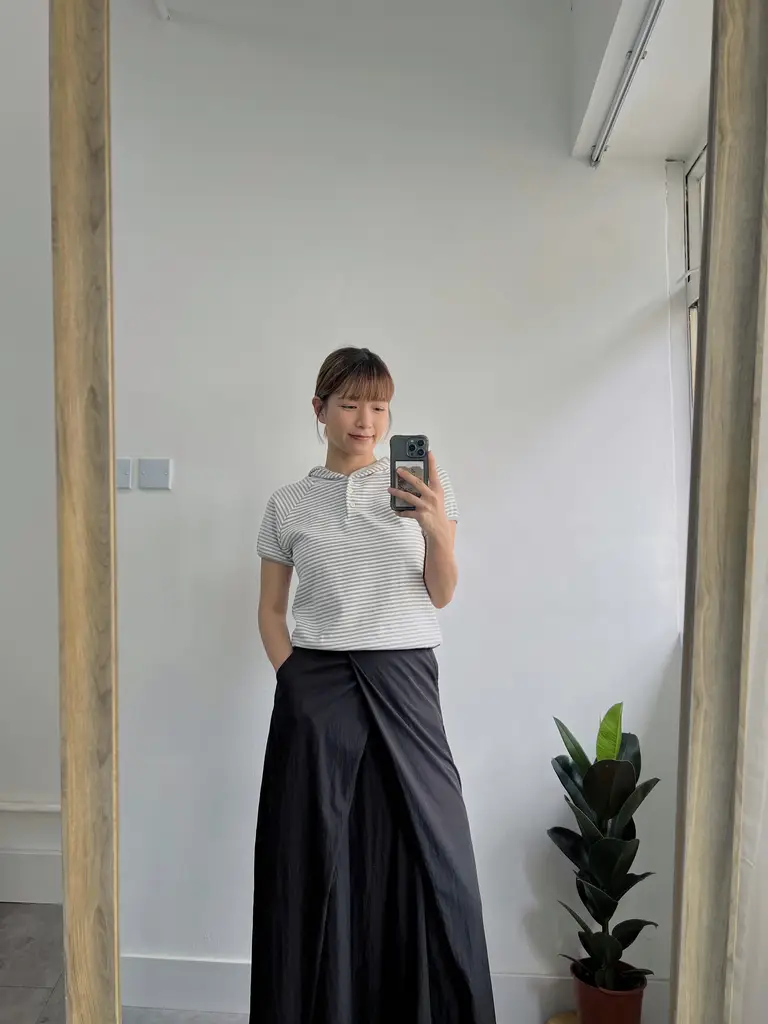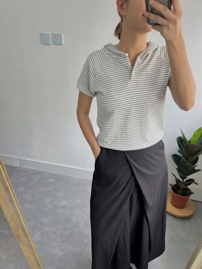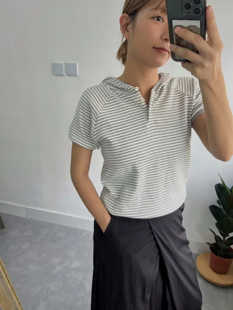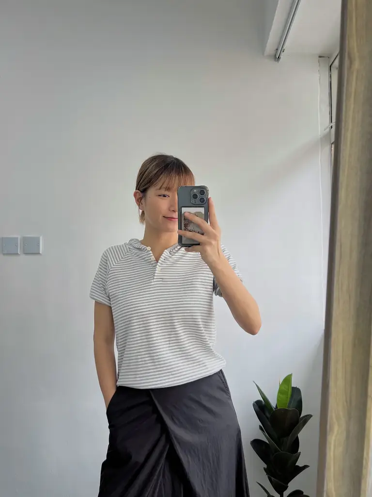 幼間條減齡耐看 // 下擺羅紋包邊穿出泡泡感