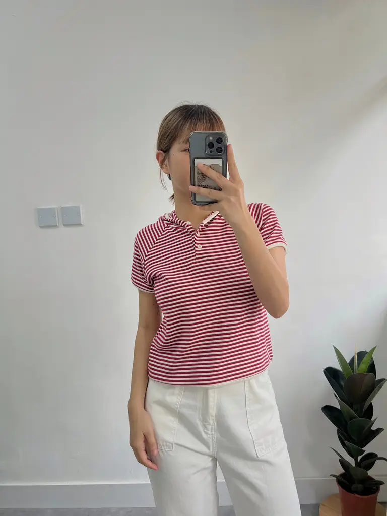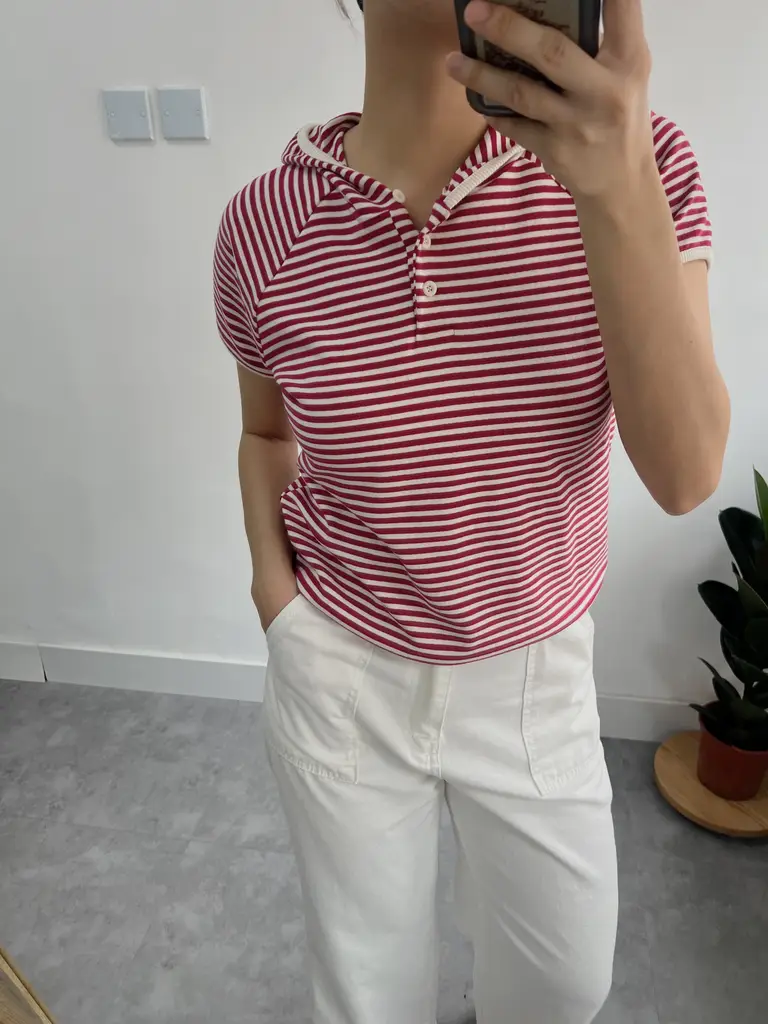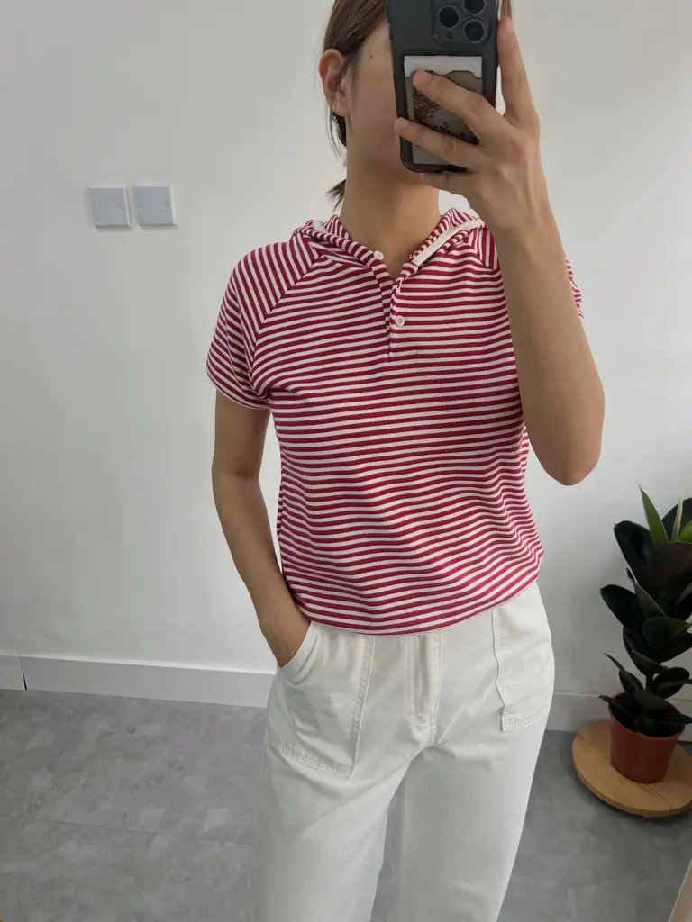 Hooded Stripe Tee (紅白)
