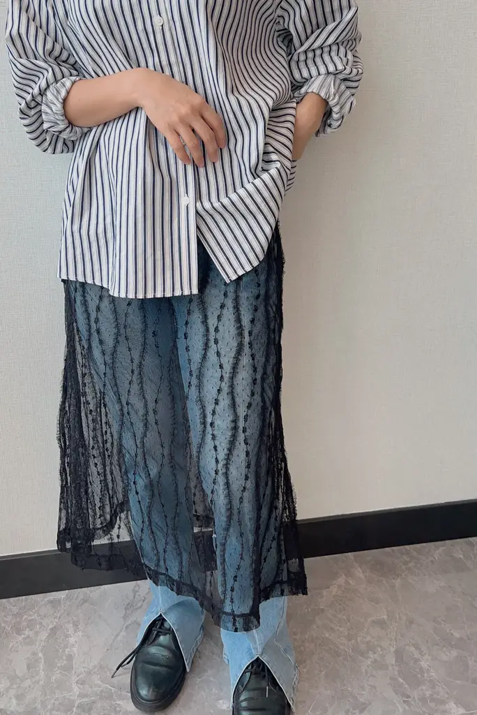 抽繩腰圍 / 透視lace 裙子 / 波浪lace 及花花