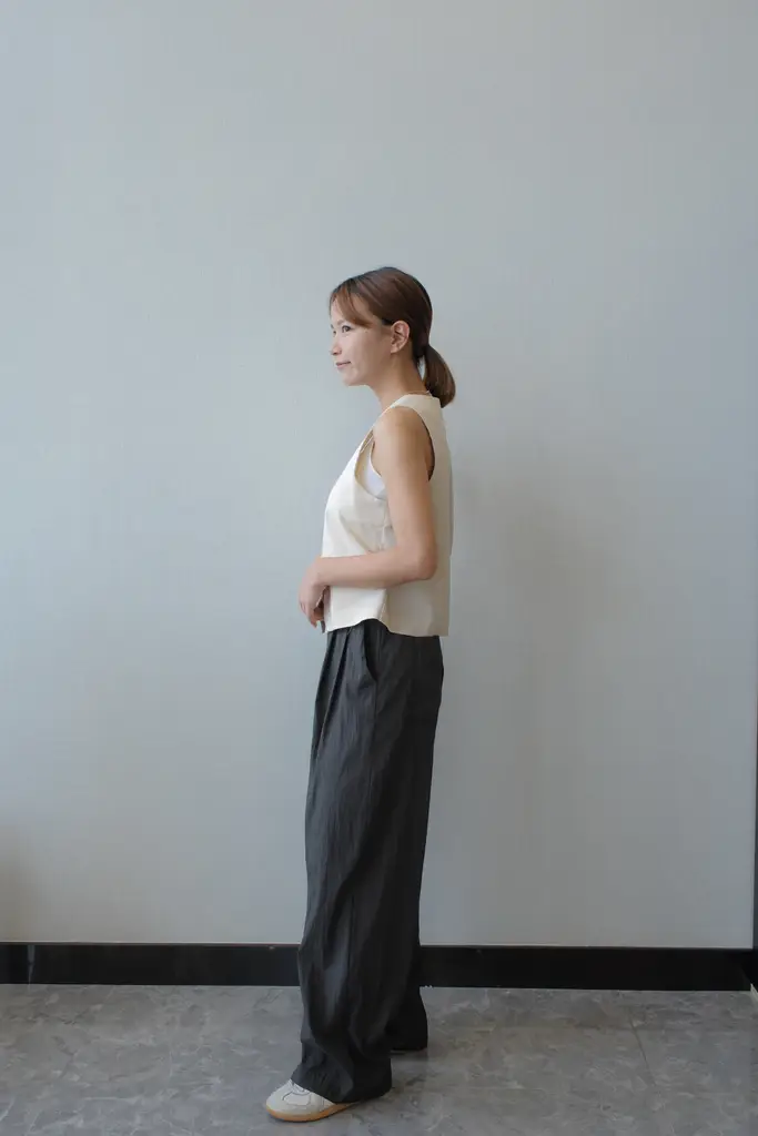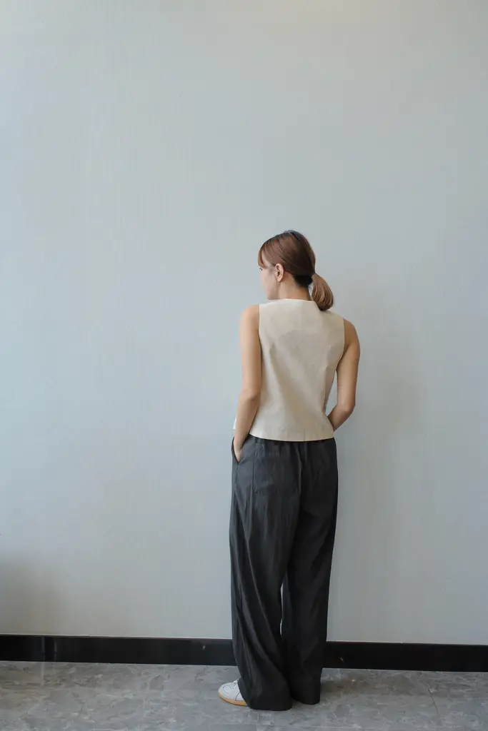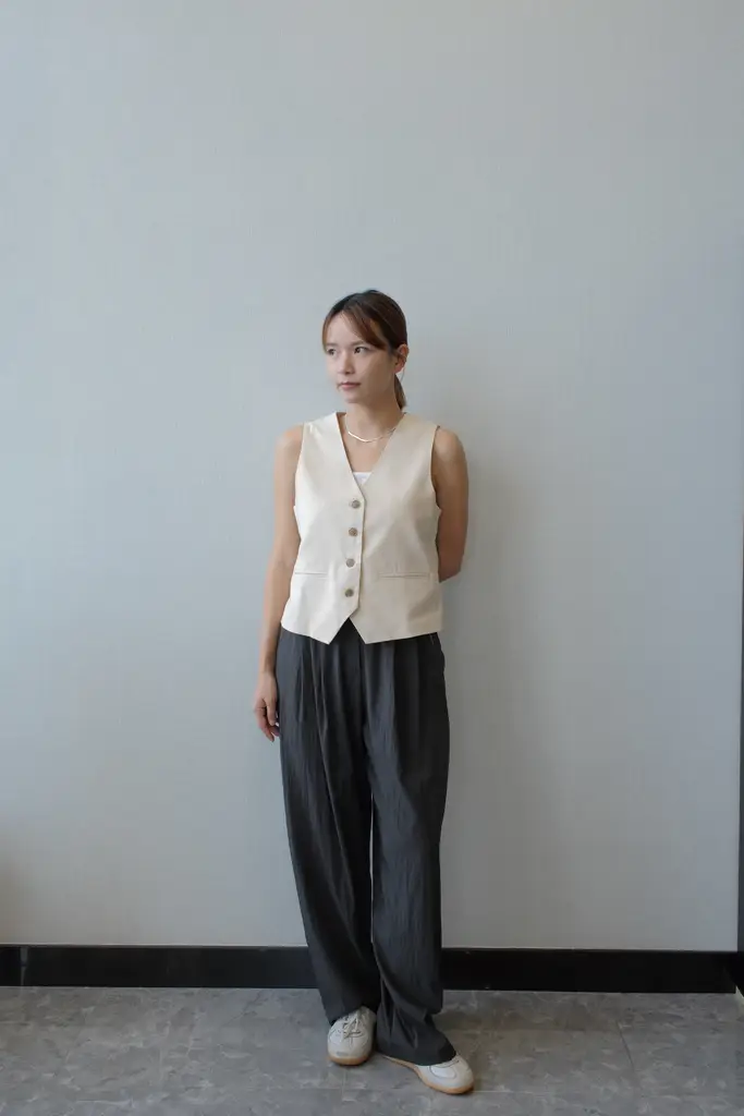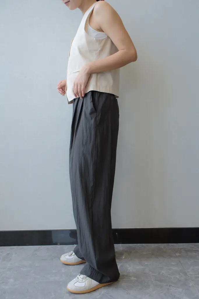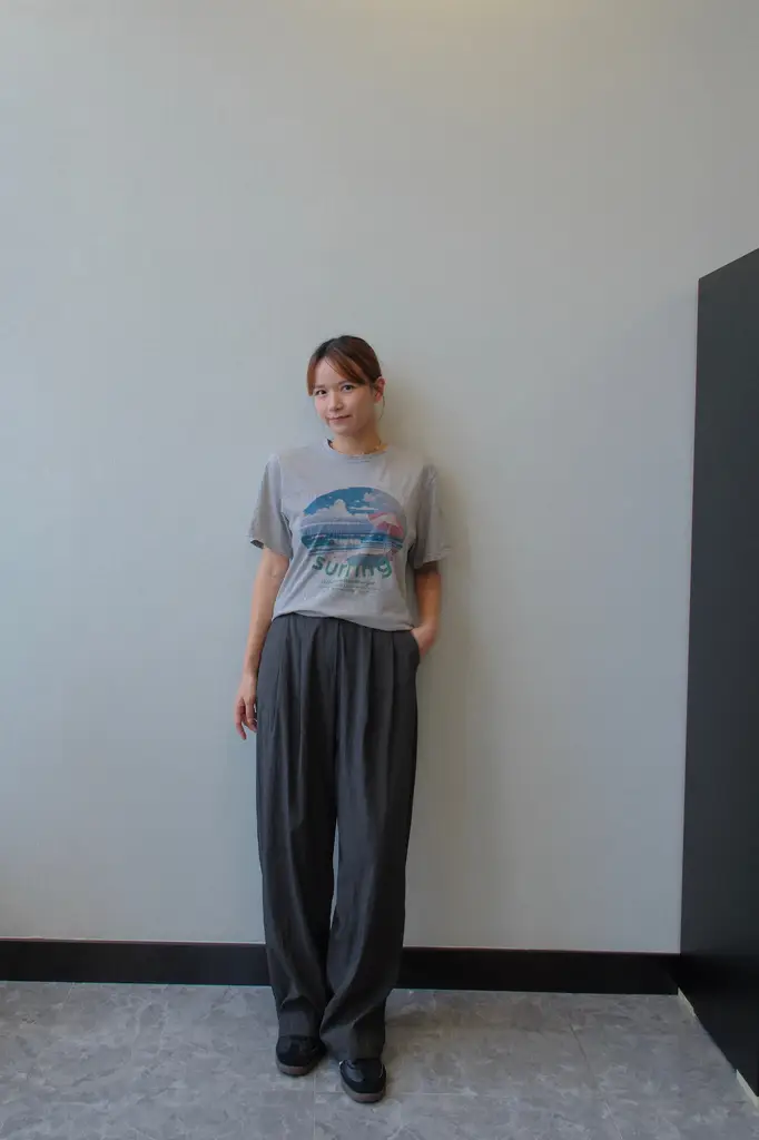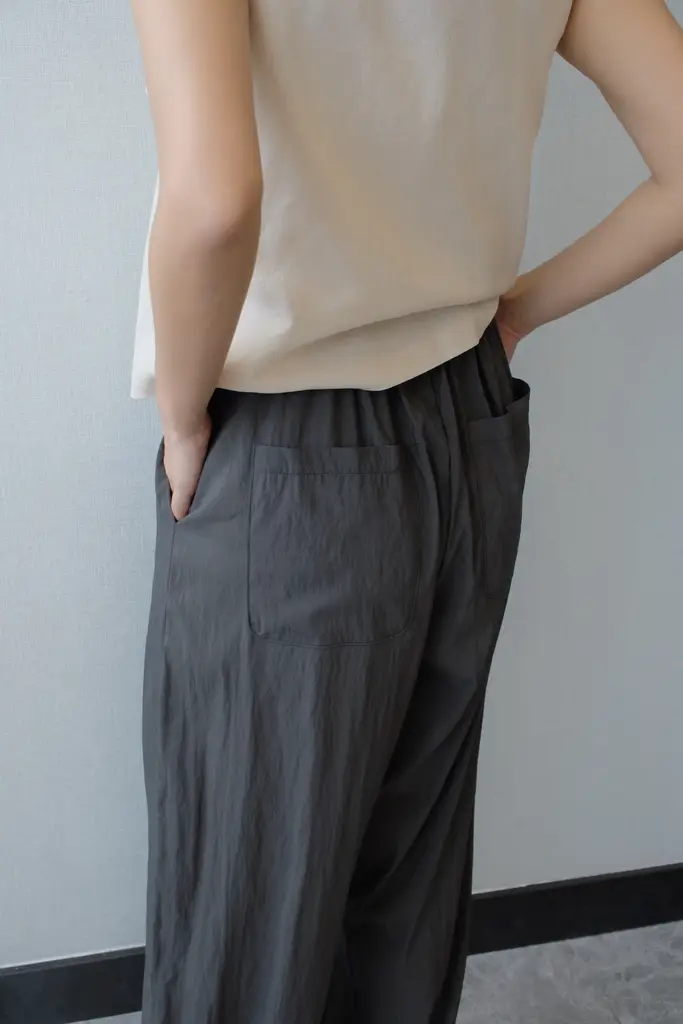 半橡筋腰 // 西褲版型 // 兩側有袋