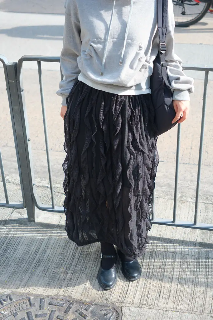 全橡筋腰 / 針織質地 / 走路時波浪飄飄看得很舒服