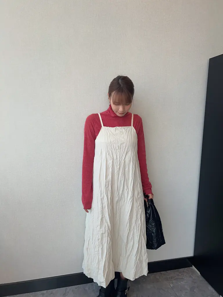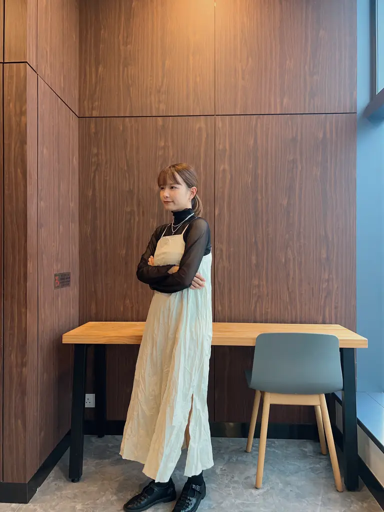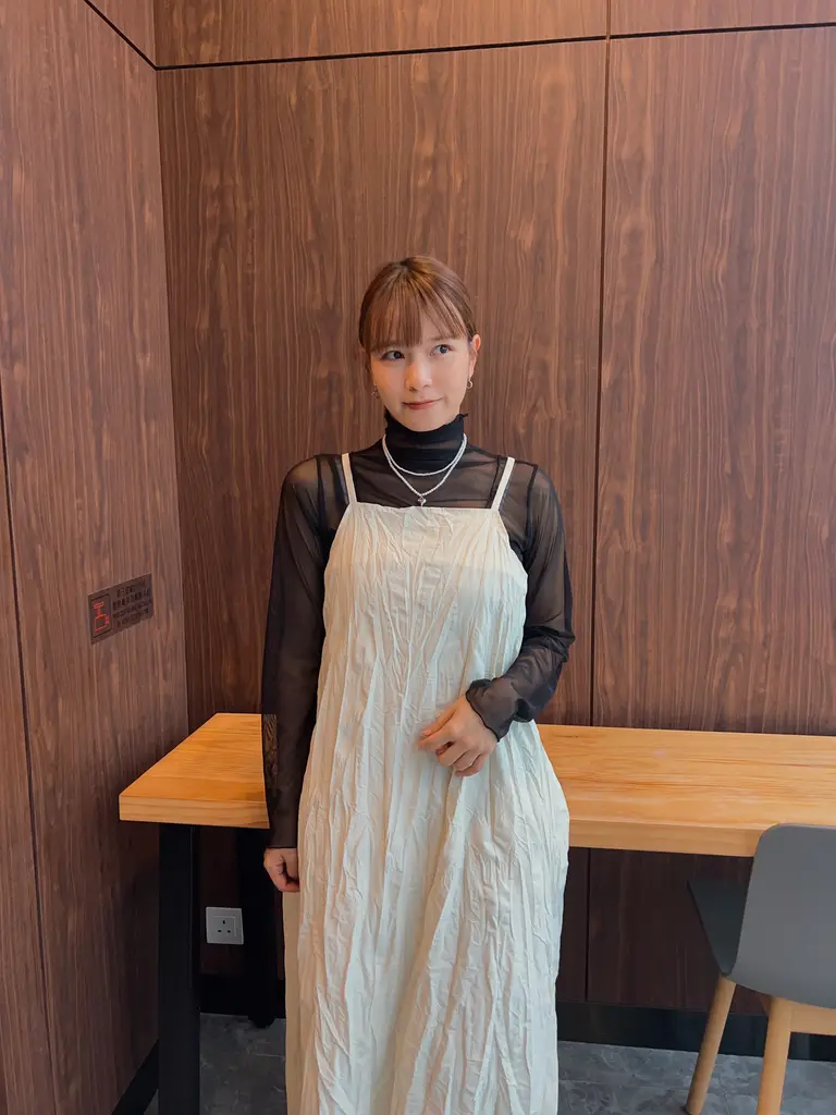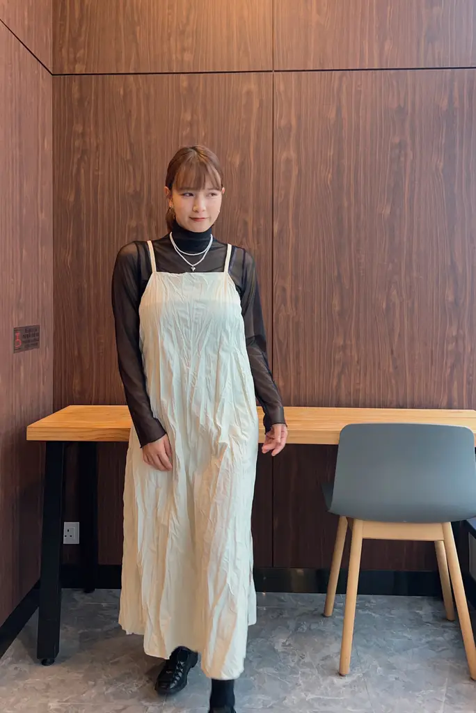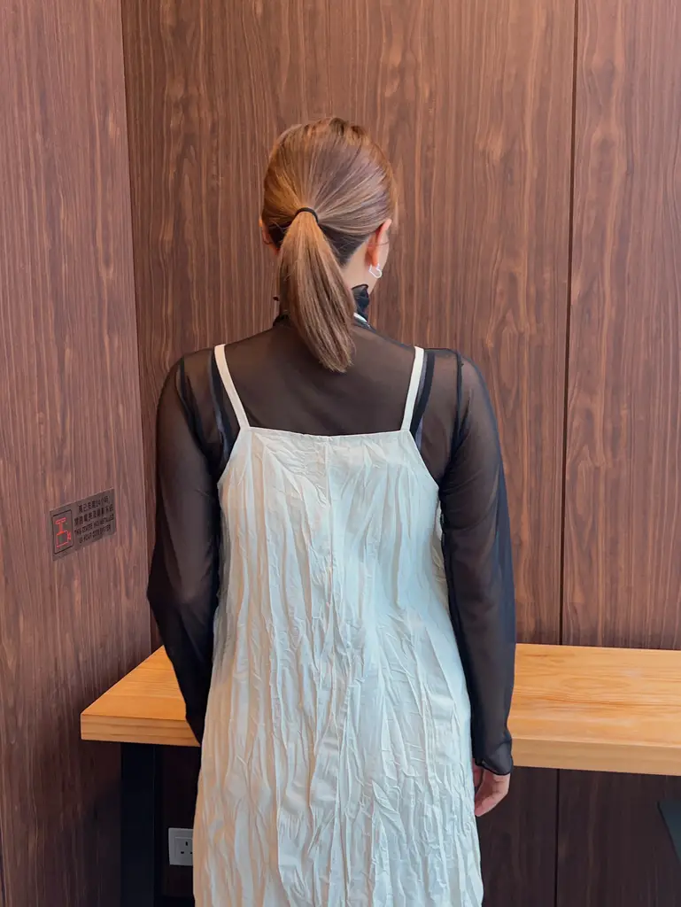 尼龍皺皺質地 (不要嘗試燙直它!) / 吊帶側開岔款 / 日常造型滿分
